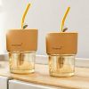 Ly cốc thủy tinh phối da đẹp, giá cạnh tranh, có ống hút.